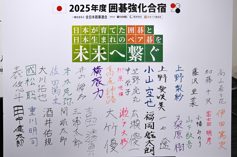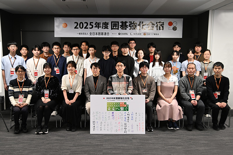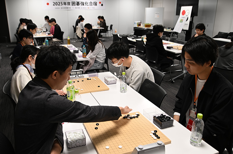 将来の国際総合競技大会やマインドスポーツ大会に向けて、日本囲碁界の男女トッププロ棋士、今後活躍が期待される若手棋士を対象として、強化合宿を今年度も実施いたしました。今年度では、囲碁ナショナルチーム(碁・Goジャパン)に参加する男女トップ棋士、若手棋士を中心とした棋士、監督・コーチ計33名による5日間(4泊5日)の合宿を実施いたしました。